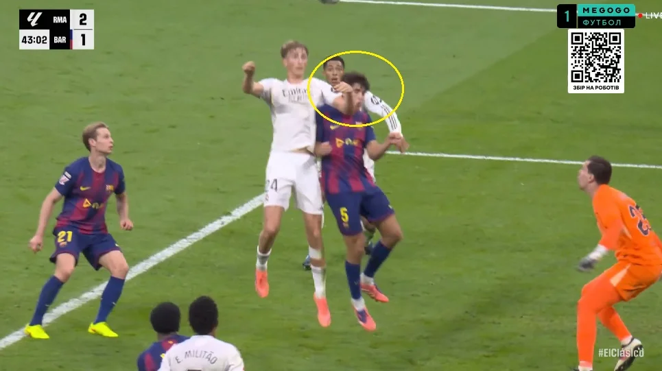 Попадание в руку Эрика Гарсии, за который в Эль Класико назначили пенальти