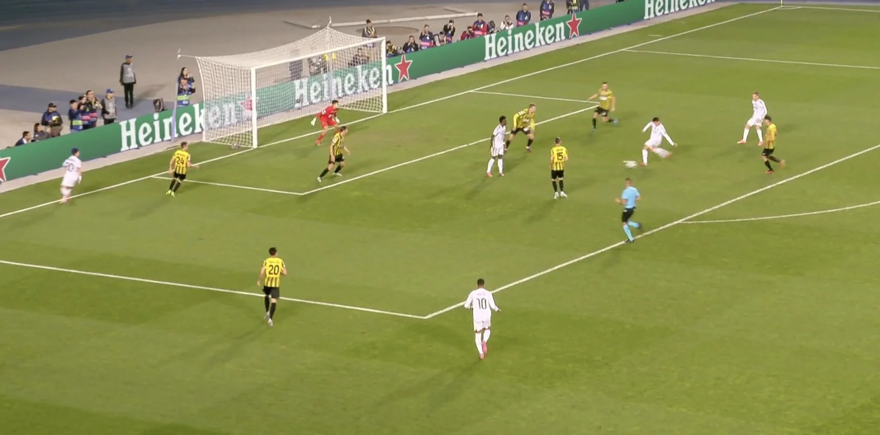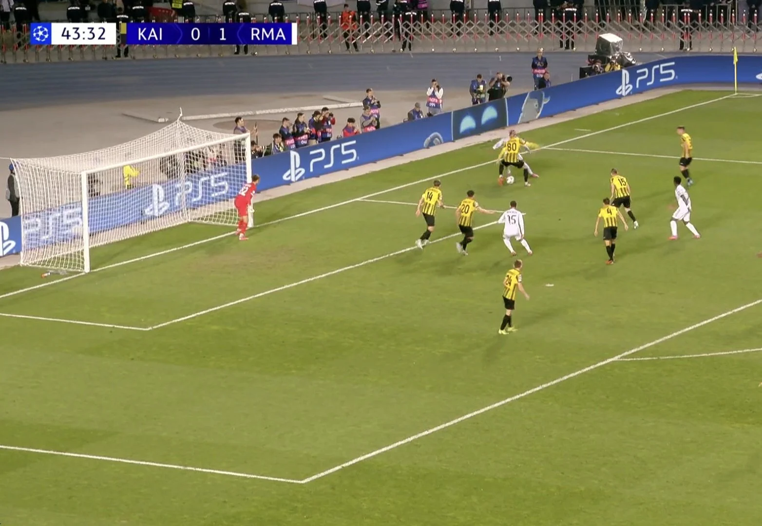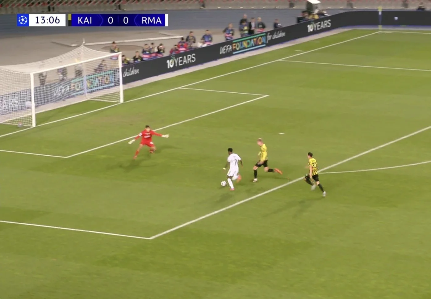 Между этими эпизодами "королевский клуб" провел несколько контратак. Еще на 58-й минуте добивать дебютанта ЛЧ мог Мбаппе, который обыгрался с Винисиусом, вышел один на один и вколотил мимо дальнего нижнего.