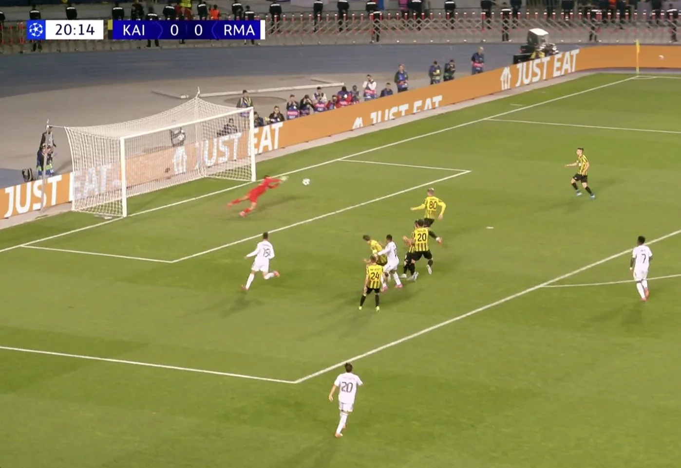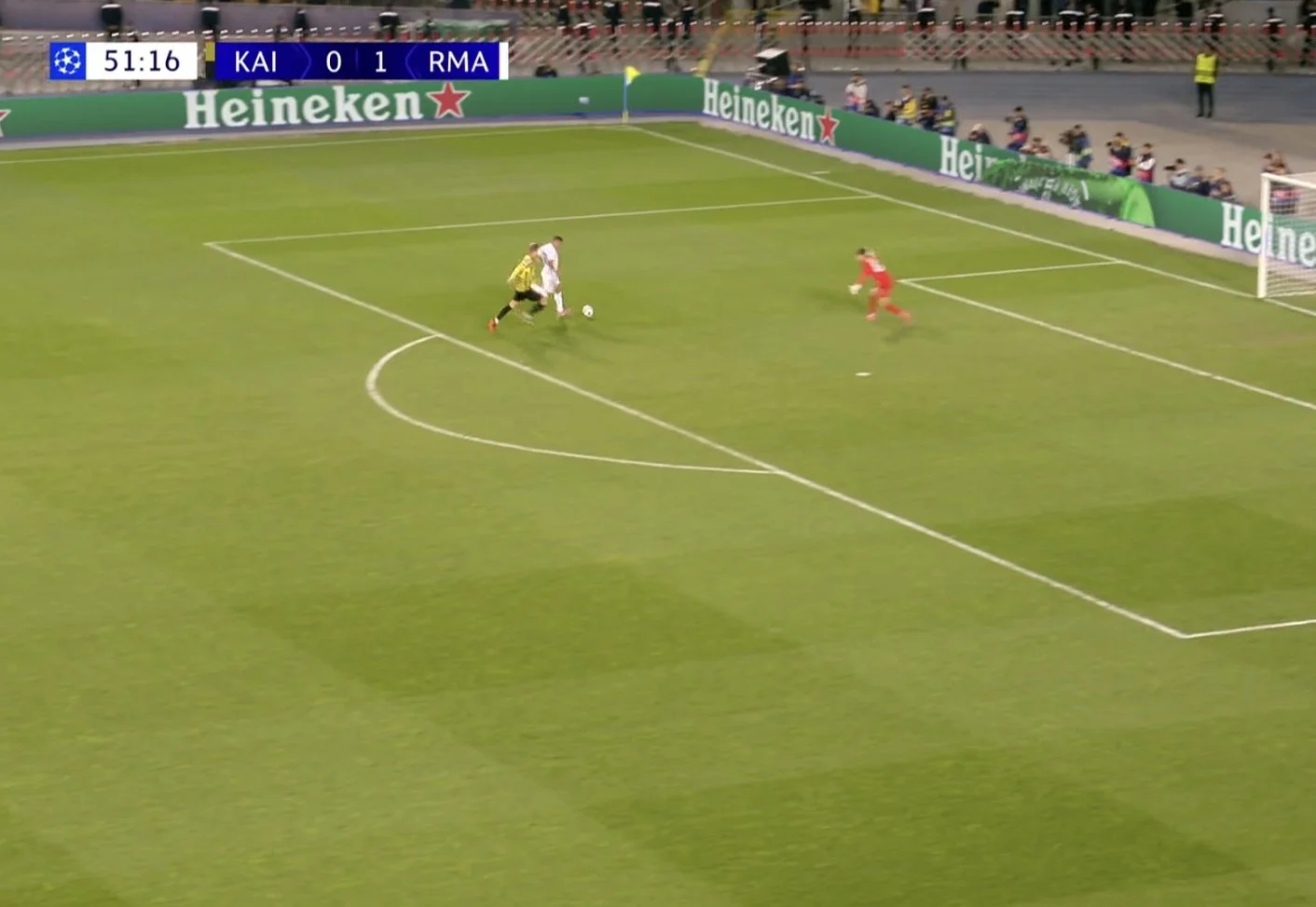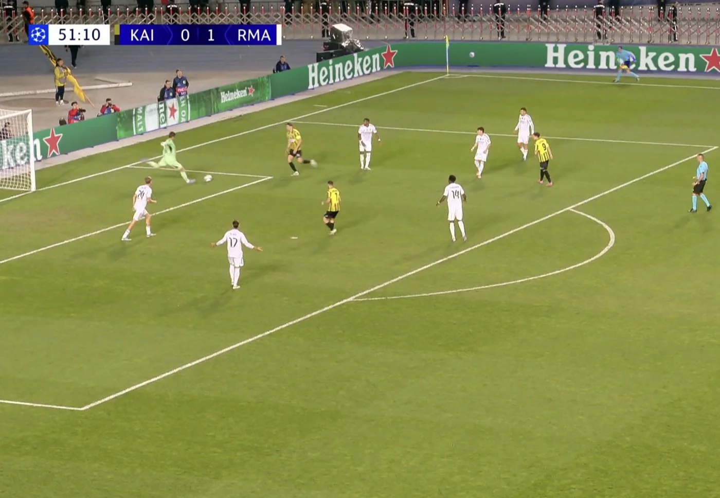 Первый тайм прошел именно так, как и ожидалось, Реал владел мячом 71% игрового времени, вел 9:5 по ударам и 20:5 по касаниям в штрафной. Мадридцы набили аж 1,64 ожидаемых гола и создали 4-5 моментов. С другой стороны, ощущение издевательства над Кайратом не возникало – несмотря на бешеную разницу в классе, казахи выиграли единоборства (22:16).