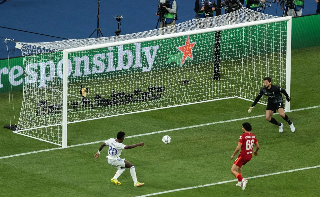 Алаба запустил шикарную верховую передачу в штрафную, а Бензема зацепился за неё, качнул Робертсона и попытался обыграть Алиссона. Голкипер сыграл неуклюже, выбив мяч в центр штрафной, а Фабинью и Конате при попытке выбить сферу столкнулись. Вальверде подхватил отскок и пробил, а мяч после этого улетел на Карима. Он и перевел круглого в сетку – впрочем, взятие ворот отменили из-за офсайда у француза!