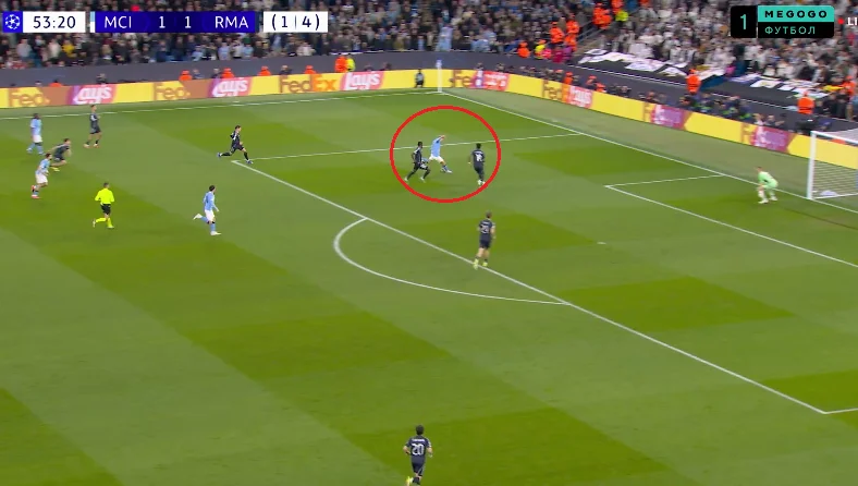 На 53-й же минуте Холанд открылся на левом краю штрафной площадки и вколотил в ближний угол. Лунин парировал в центр, а Родри добивал из-за пределов штрафной. Получилось очень неточно.