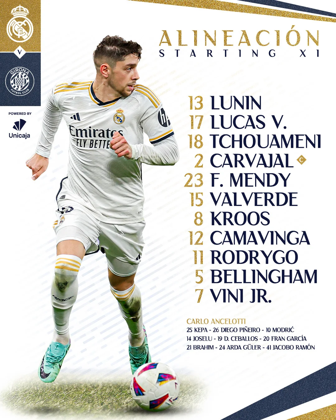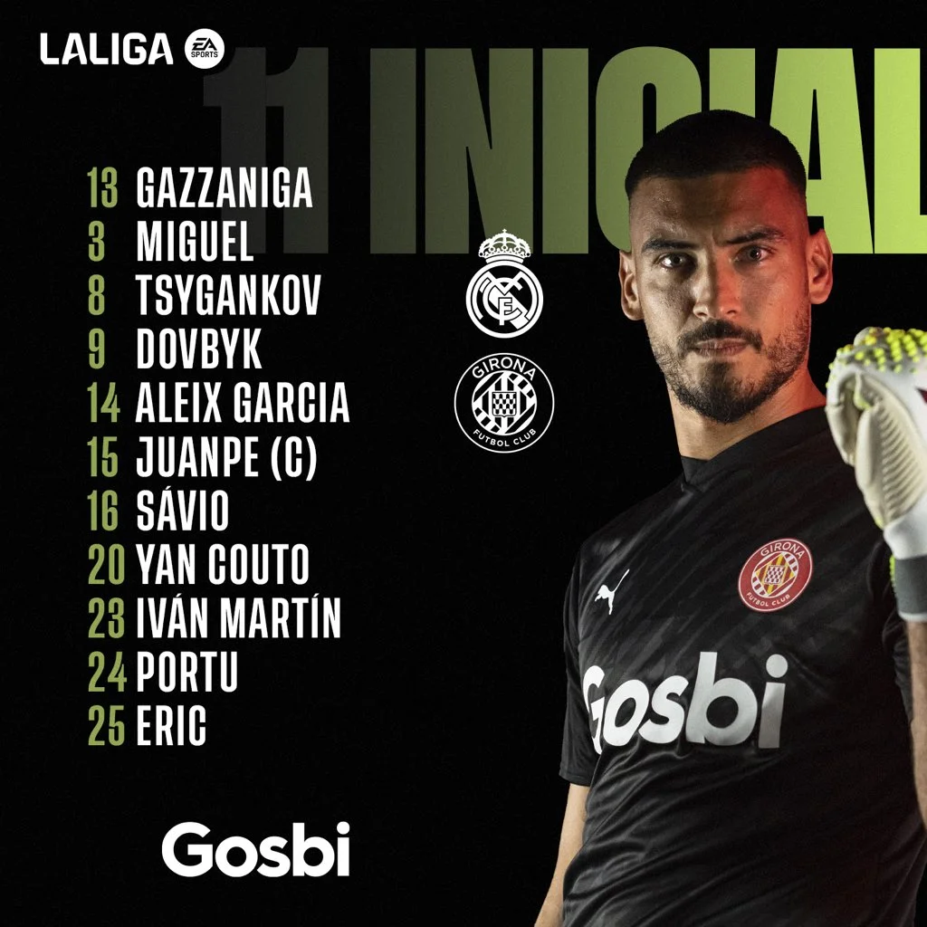В стартовом составе Реала вышел Андрей Лунин. У Жироны Виктор Цыганков и Артем Довбик тоже попали в основу. Нападающий сборной Украины из-за травмы пропустил игру с Реалом Сосьедад и несколько тренировок в течение последней недели, но оказался в старте. Мичел рискнул выпустить лучшего бомбардира Жироны на игру с лидером чемпионата.