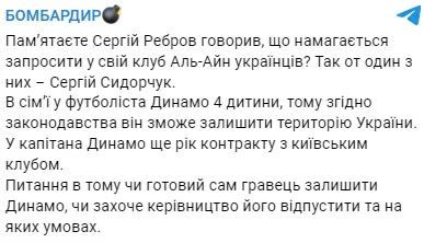 Как известно, Сергей Ребров ранее заявлял, что планирует пригласить в свою команду игроков из УПЛ и уже работает над некоторыми трансферами. По информации Telegram-канала Бомбардир, первой ласточкой в команде украинца может стать Сергей Сидорчук.