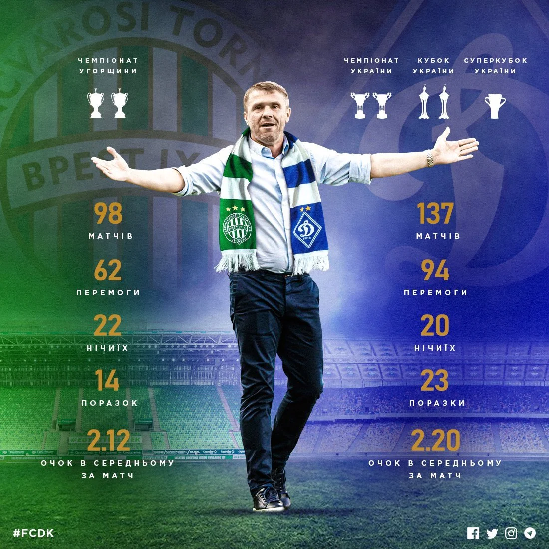 Сергій Ребров робив Ференцварош чемпіоном / фото Péter Zsolnai