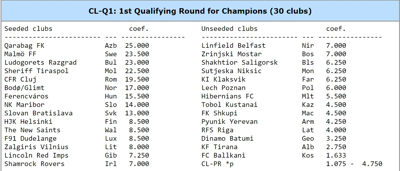 Победители пар выйдут во второй квалификационный раунд Лиги чемпионов, а проигравшие попадут во 2-й отборочный раунд Лиги конференций, где будут двигаться Путем чемпионов.