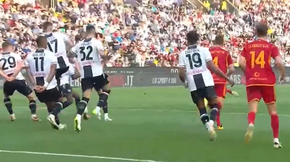 Еще до середины тайма команды обменялись опасными моментами: Кристенсен головой пробил мимо стойки ворот римлян, а Ауар с близкого расстояния не попал в створ. Вскоре лишь реакция Окойе спасла Удинезе после удара Бальданци в нижний угол.