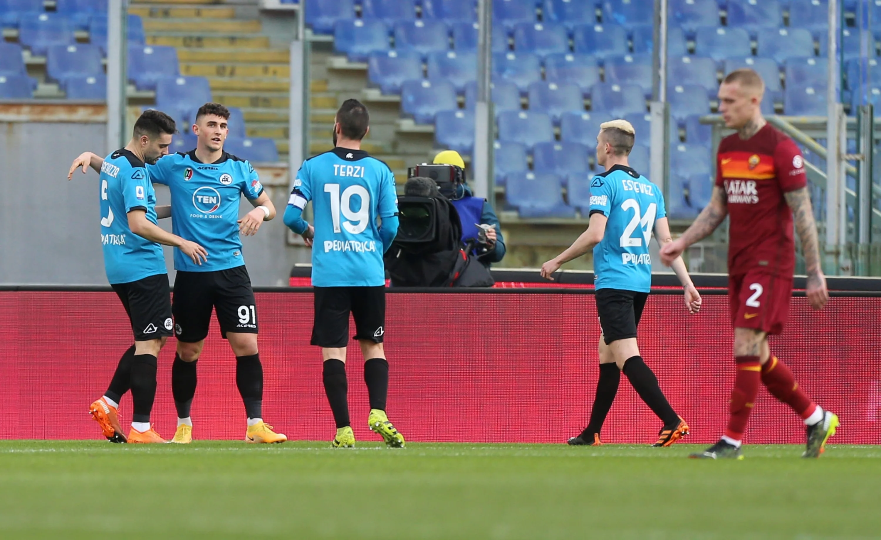 На старте второго тайма Рома ошеломила Специю сразу двумя голами: на 52-й минуте Майораль завершил быструю атаку хозяев ударом с линии штрафной в левый угол, а на 55-й Спинаццола прорвался по флангу на край штрафной и прострелил под замыкание Карсдорпу – 3:1! Впрочем, уже на 59-й Специя сократила отставание в контратаке с выстрелом Фариаса метров с 18-ти, а на 90-й Верди сравнял счёт вследствие выхода один на один. Казалось, что это конец Фонсеки, но на 90+2-й Бруну Перес принял навес на правом краю штрафной и сбросил мяч под удар Пеллегрини – 4:3! Это была победа.