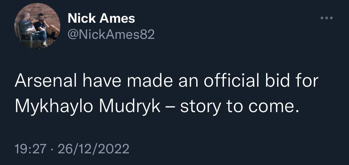 В понедельник, 26 декабря, в СМИ появилась информация об официальном предложении Арсенала Шахтеру по трансферу Михаила Мудрика. Подробности не раскрывались, речь шла лишь о солидности финансовой составляющей.