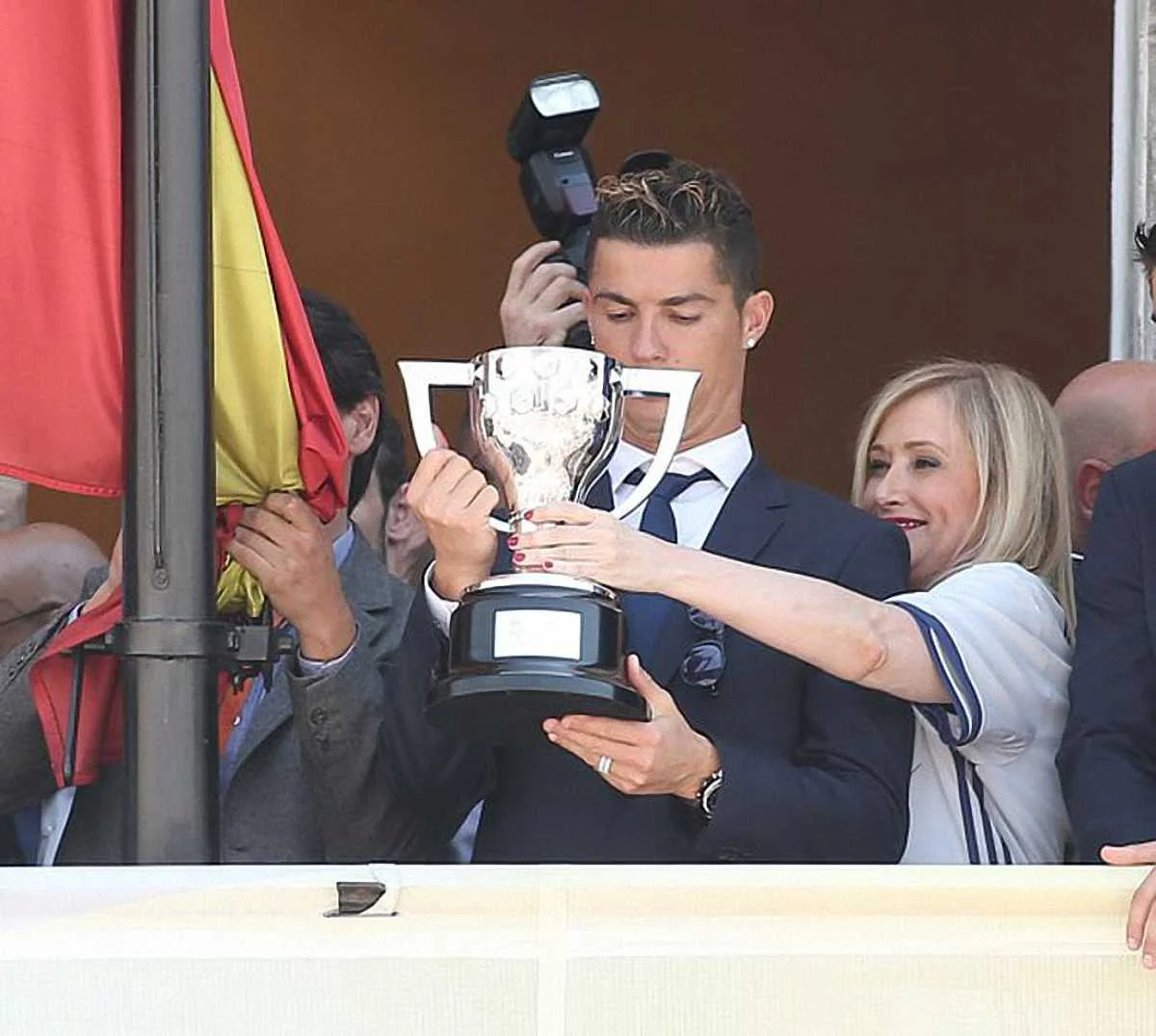Роналду и мэр Мадрида во время празднования 33-го чемпионства Испании Реала