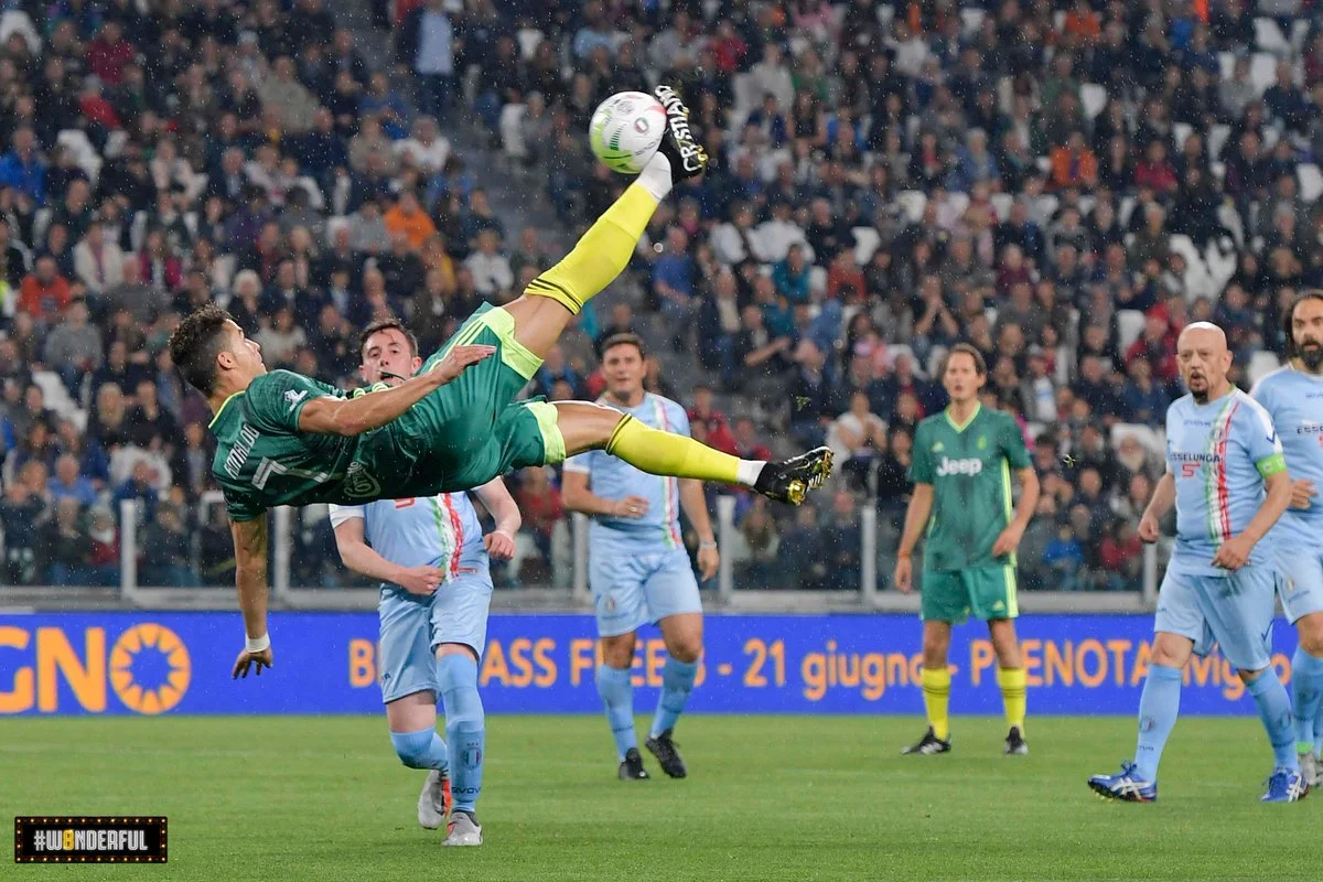 Роналду принял участие в благотворительном матче звезд и повторил шедевральную бисиклету – на воротах снова стоял Буффон
