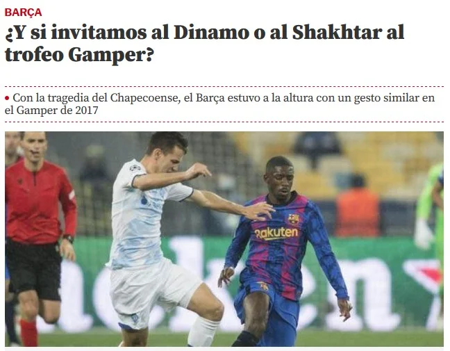 15:03. Тем временем каталонский журналист Хавьер Бош призывает руководство Барселоны предложить Динамо, Шахтеру или сборной Украины приехать в августе на Кубок Гампера. Все вырученные от продажи билетов средства можно было бы направить на восстановление нашей страны, которую терроризируют русские войска. Похожим жестом "блаугранас" отличились после авиакатастрофы Шапекоэнсе в 2017 году.