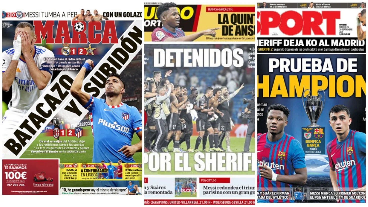 Ми пережили схоже потрясіння минулого року проти Шахтаря. І ось знову. Хоча теоретично цю команду потрібно громити. Після кількох замін Анчелотті Мадрид втратив гостроту з першого тайму, однак шанси все ж були. Того ж Модріча зупинив грецький монстр у воротах. Неймовірне і незрозуміле фіаско. Сподіваюся надалі не буде жодної недооцінки. У Лізі чемпіонів не існує слабких команд. Шериф посадив нас у темницю. Дуже важко це прийняти", – підсумовує відомий медійник. Тим часом на обкладинці AS – вже звична гра слів: "Шериф нав'язує свій закон".