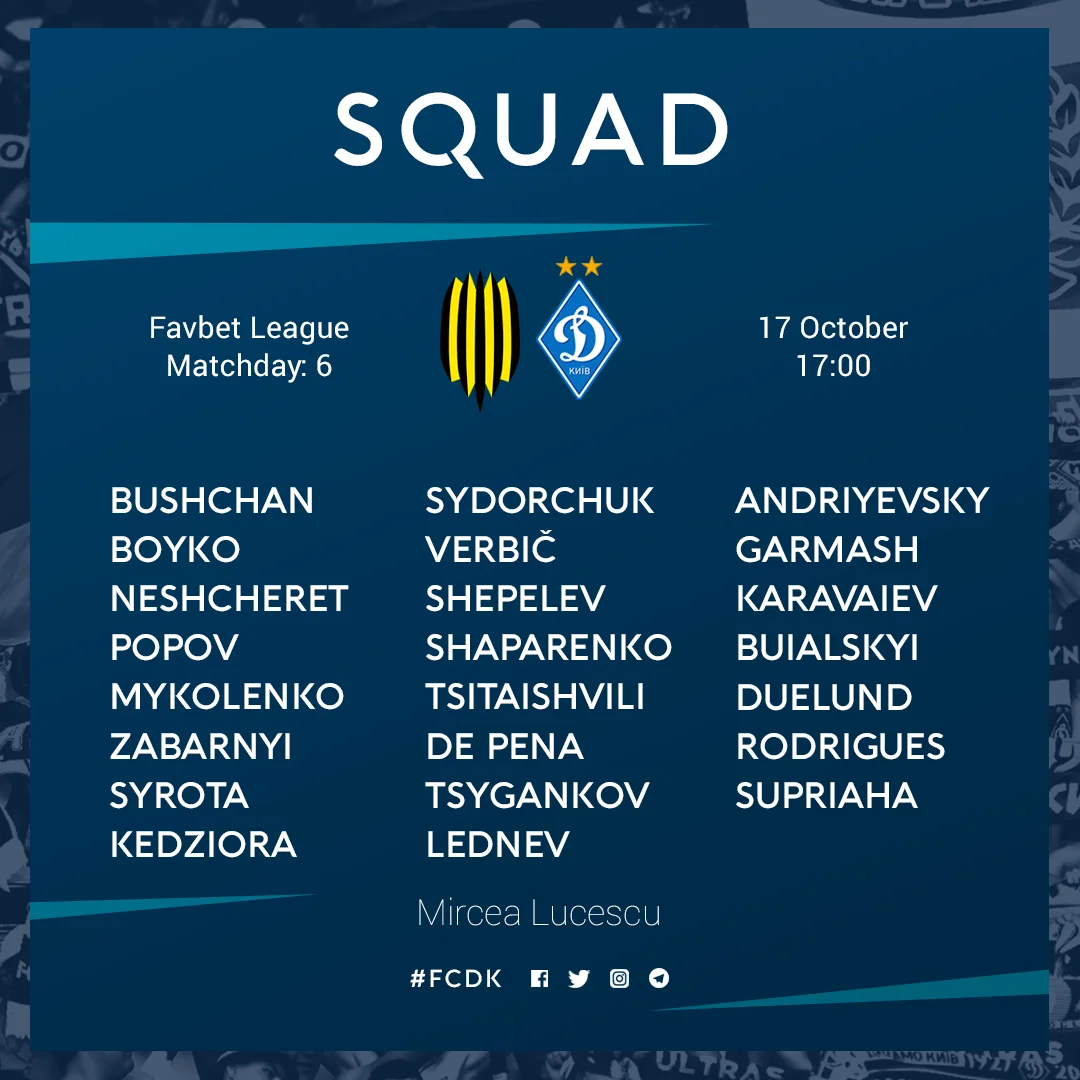 Отметим, что в заявке присутствуют Виталий Буяльский и Владислав Супряга, которые недавно находились в лазарете. А вот новичков киевлян Тудора Бэлуцэ, Владимира Костевича и Клейтона в заявке нет.