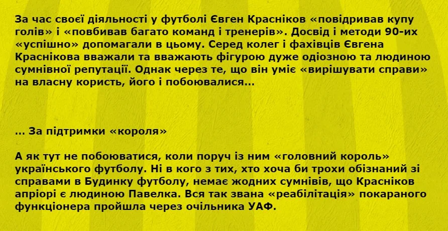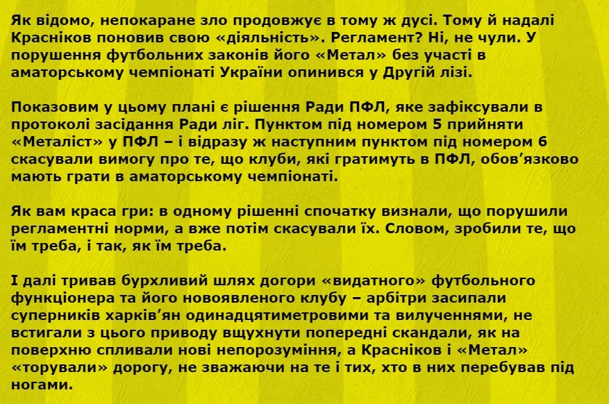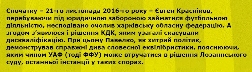 Еще одним виновником назвали Андрея Павелко, который якобы способствовал возрождению Металлиста, закрыл глаза на нелицензированных тренеров – Александра Кучера и Александра Призетко и так далее.