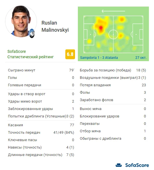 Портал SofaScore наградил Малиновского посредственным баллом 6,8. Лучшим из бергамасков закономерно стал Дзаппакоста – на счету правого латераля две голевые передачи. Более высокие оценки также у Фройлера, Ловато, Иличича, Миранчука, Копмейнерса и Пашалича. Руслан экономит силы для сборной Украины?