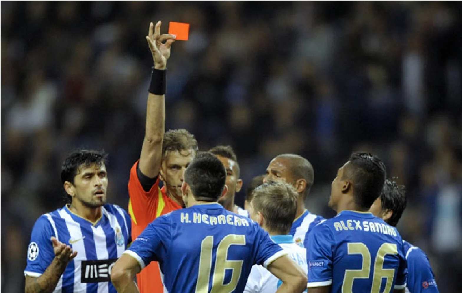 Удивительное удаление, сформированное из двух эпизодов. Первый – жесткий, но оправданный фол Эктора Эрреры на Халке. Второй – микс необдуманных действий и придирчивости итальянского рефери Паоло Тальявенто. Стенка Порту развалилась – Эррера выпрыгнул из нее слишком рано и получил второе предупреждение за минуту, которое превратилось для него в красную карточку. Португальцы держали оборону на протяжении всей игры, однако в концовке Зениту удалось забить победный гол – отличился Александр Кержаков.