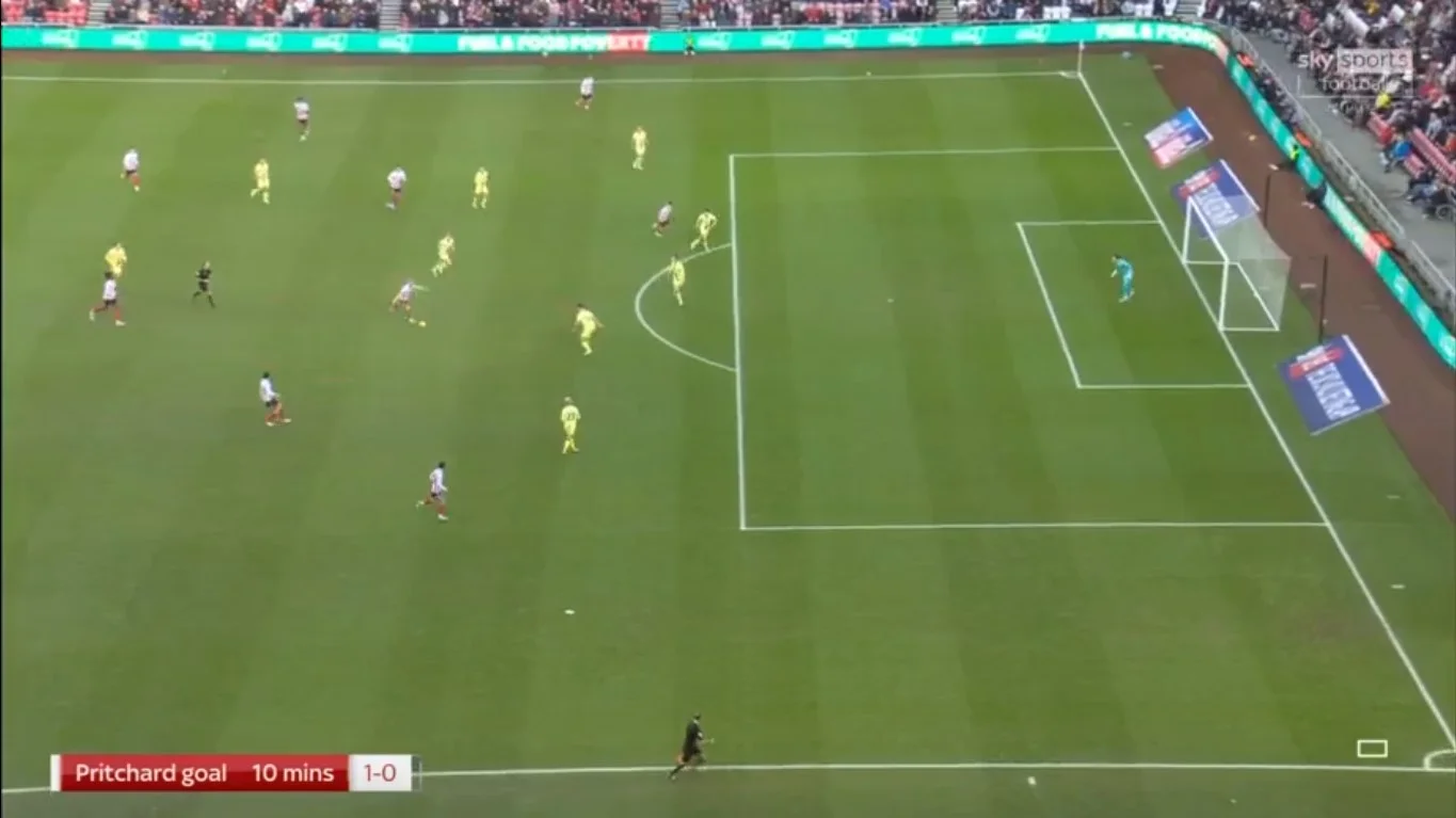 Французский опорник Эква сначала опасно пробивал сам, а на 10 минуте покатил между ног сопернику на Причарда. Правый вингер сместился в центр и мощным ударом прошил голкипера. Как тут не вспомнить статистику, которую демонстрировали перед началом встречи. Сандерленд – лучший по ударам и второй по созданным моментам в Чемпионшипе, но только 23 по реализации. Тогда как у Престона все это ровно наоборот. А вот и Русин. Откатил украинец под еще один дальний удар. Причард, как и Кларк перед тем, просто размял голкипера.