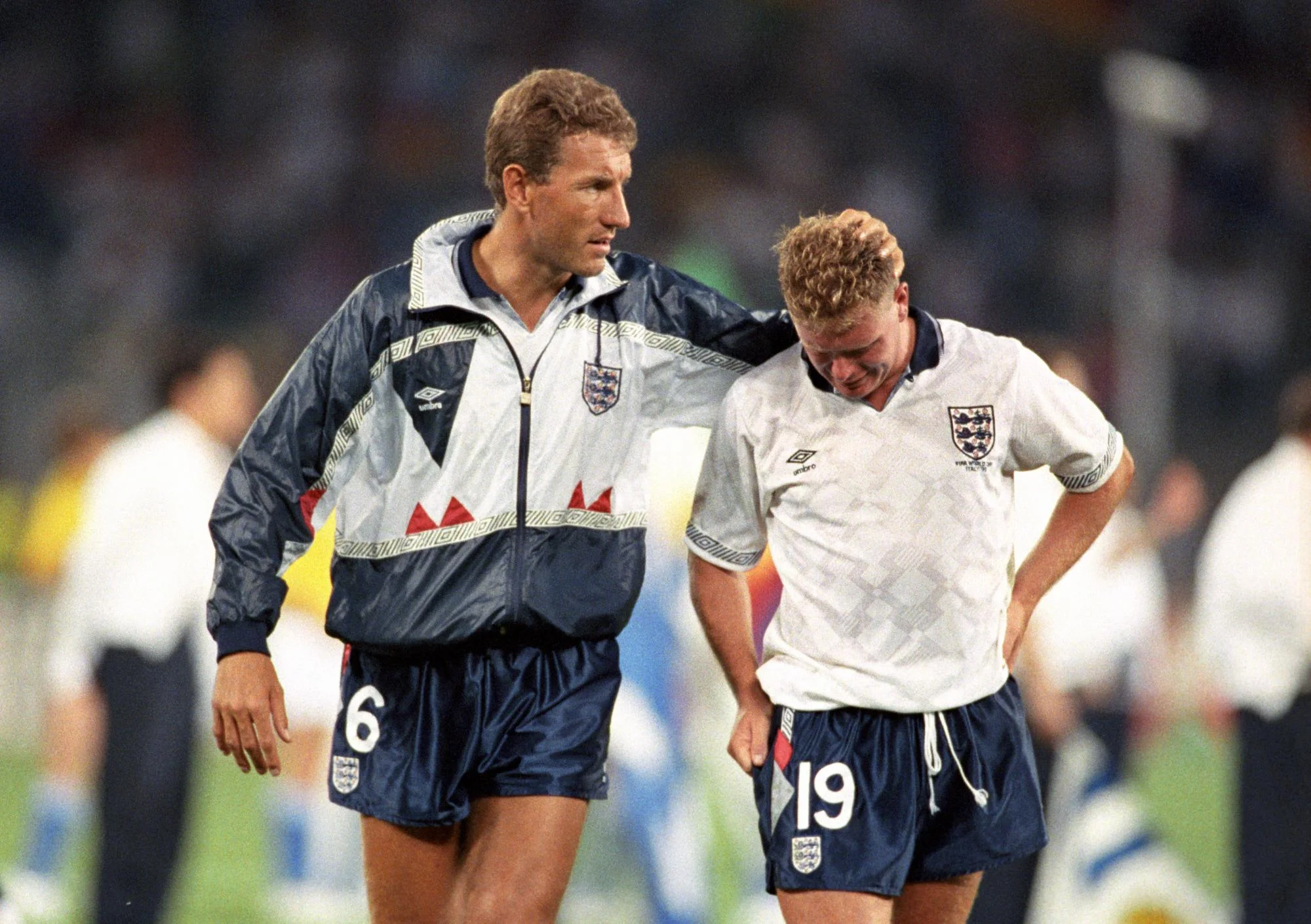 Терри Бутчер успокаивает Пола Гаскойна после поражения от Германии