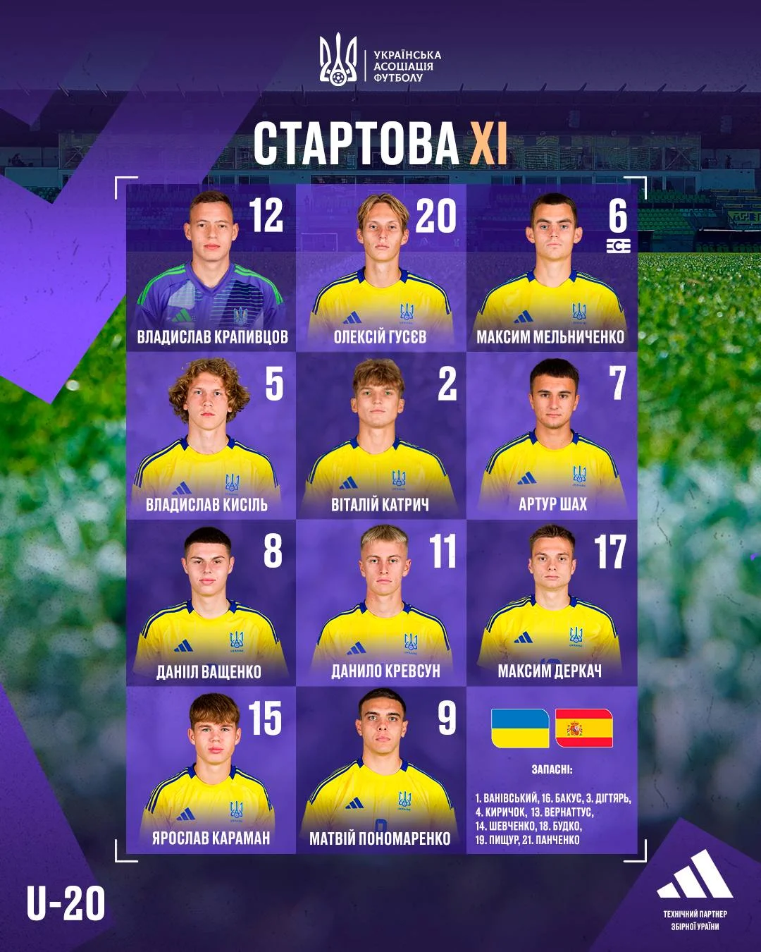 Запасные: Ванивский, Бакус, Дигтярь, Киричок, Вернаттус, Шевченко, Будко, Пищур, Панченко.
