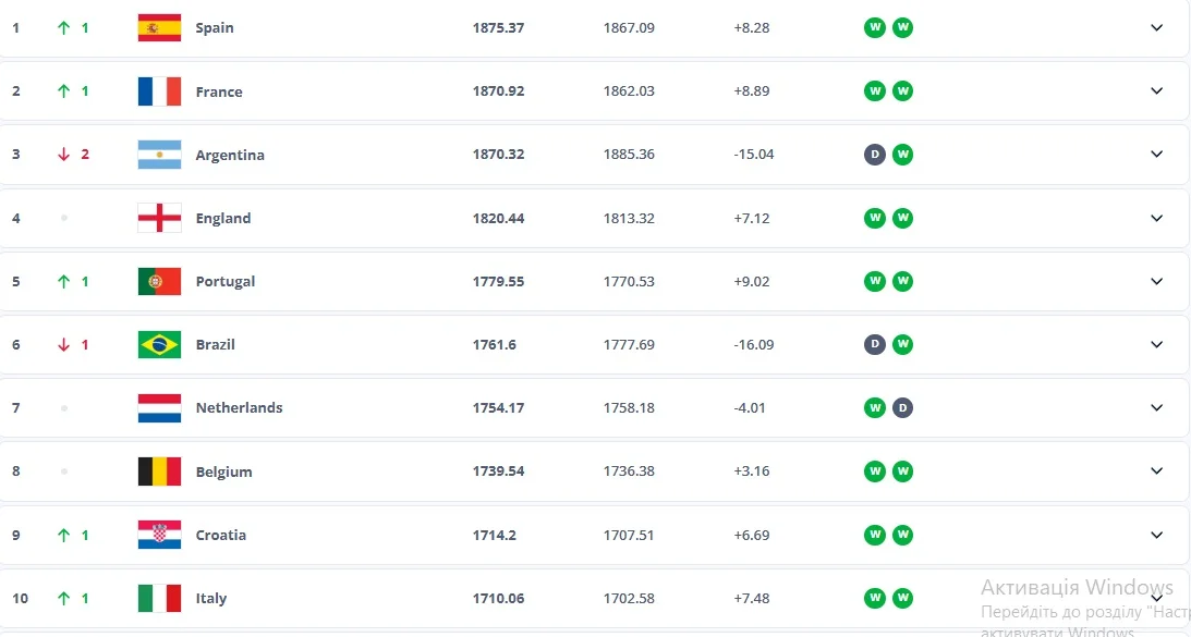 Сборная Украины опустилась в рейтинге ФИФА – появился новый лидер, чемпионы мира потеряли две позиции