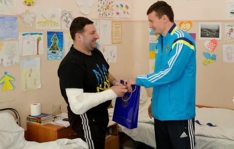 Сборная Украины проведала раненых украинских воинов (ФОТО)
