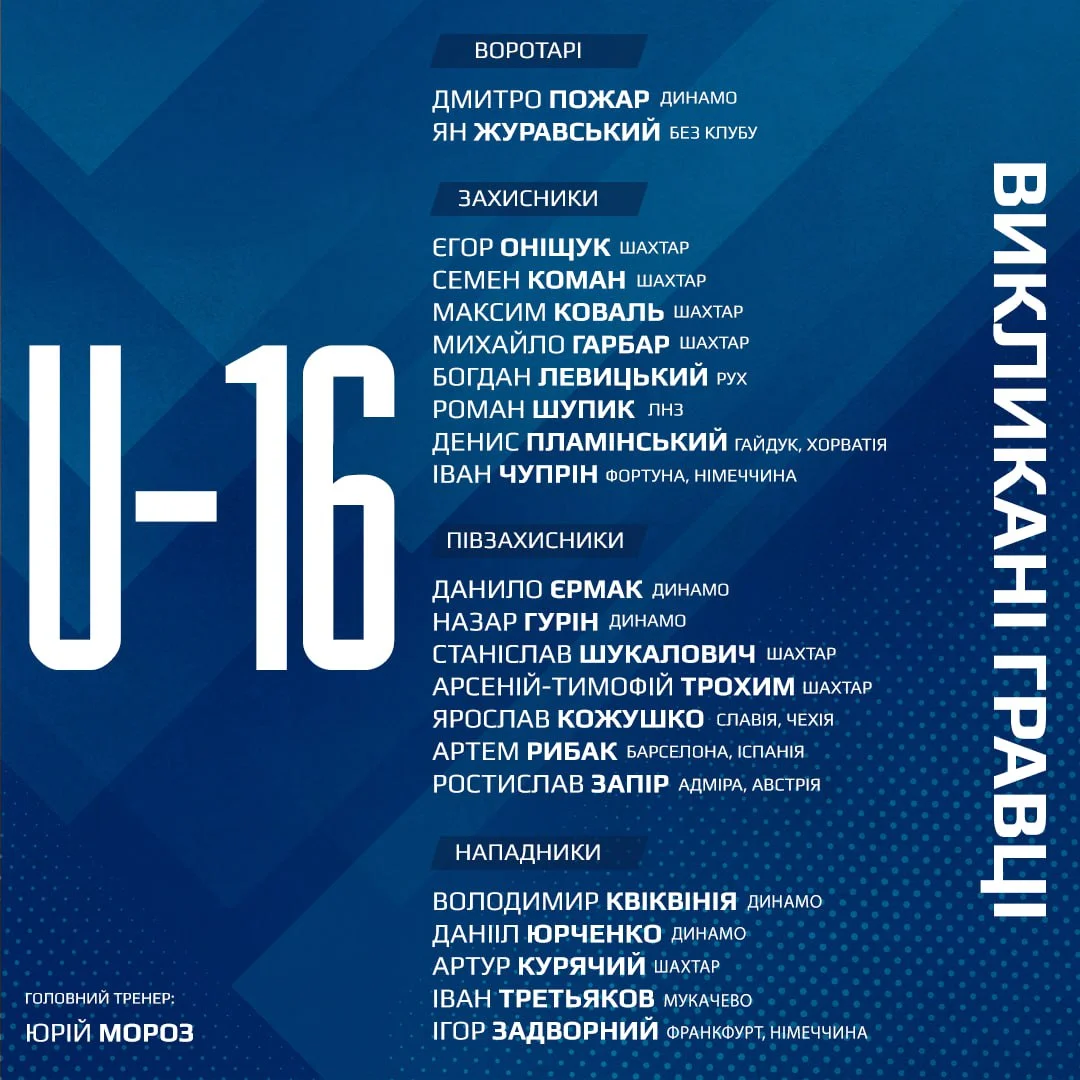 Сборная Украины U-16 объявила состав на дуэли с Англией и Францией – гегемония Шахтера и Динамо, легионер из Барселоны