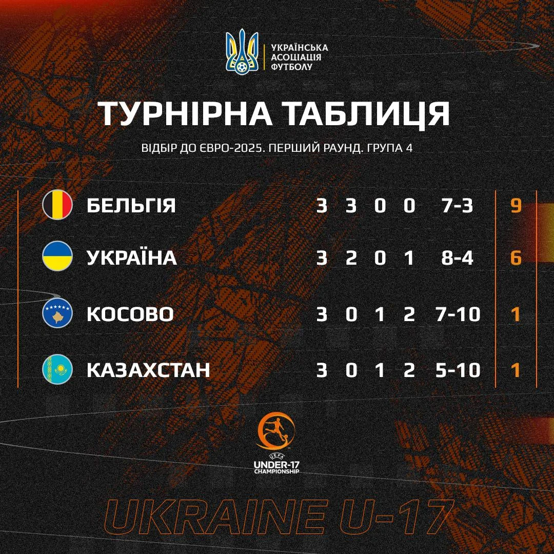 Сборная Украины U-17 вышла во 2-й раунд отбора Евро-2025 несмотря на обидное поражение от Бельгии