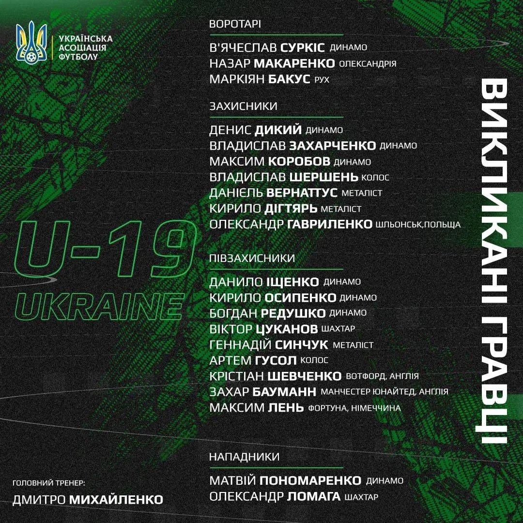 Сборная Украины U-19 объявила состав на матчи квалификационного раунда Евро-2025 – хавбек Манчестер Юнайтед в заявке