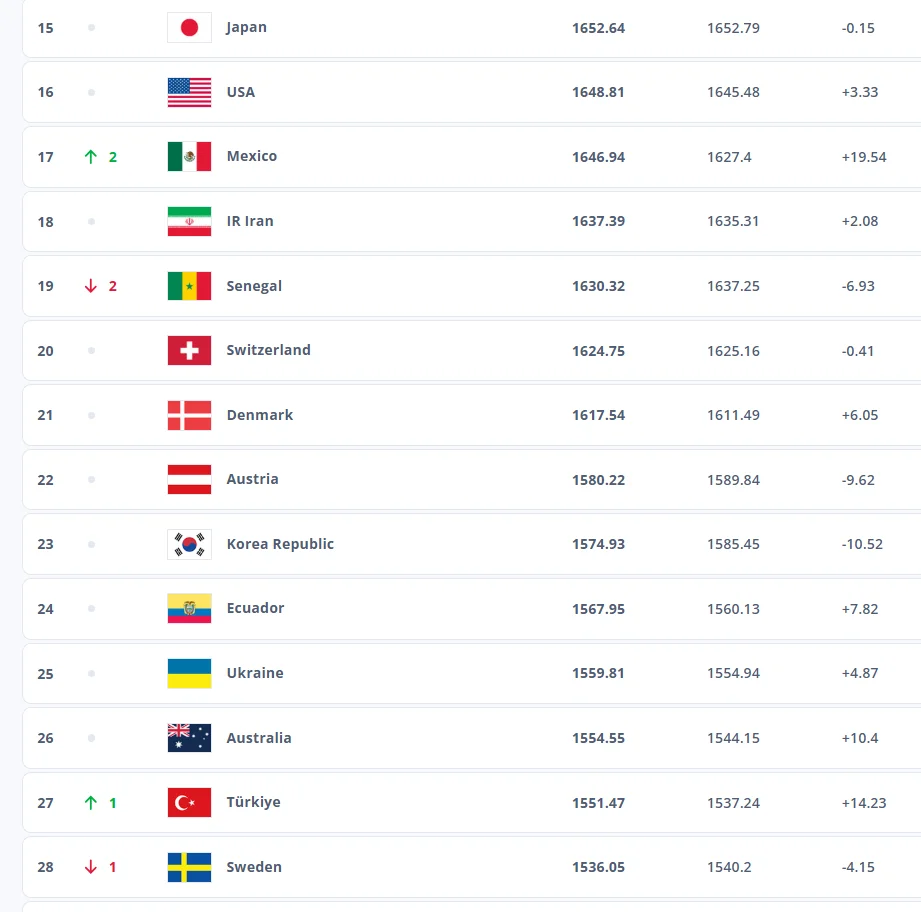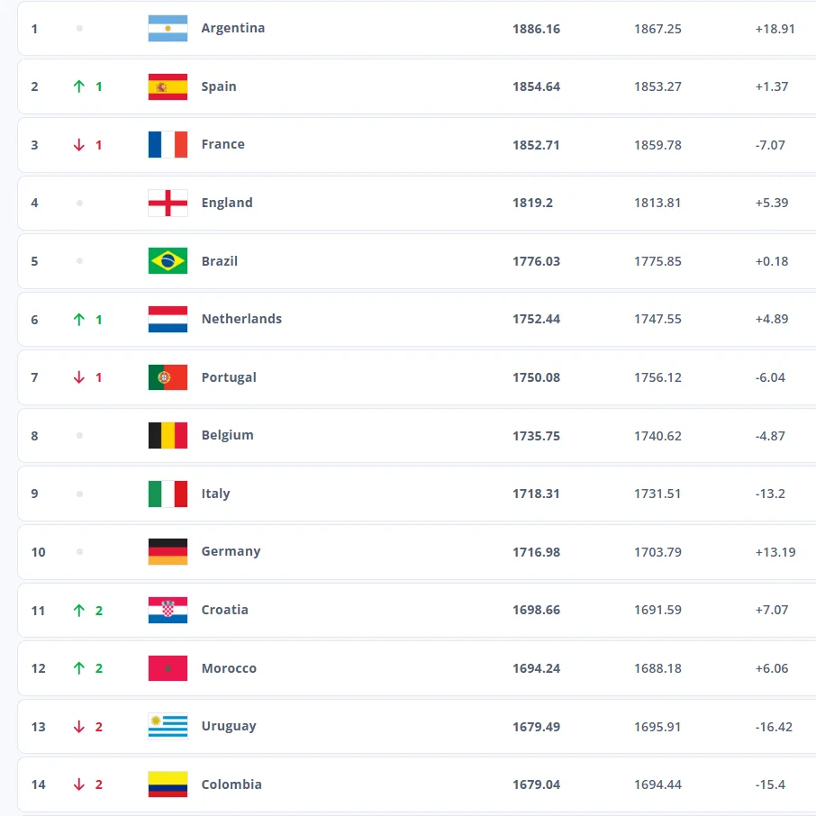 Лидером рейтинга в дальнейшем остается Аргентина. Испания опередила Францию, которая является соперником сборной Украины в отборе на ЧМ-2026, и вышла на второе место. Среди изменений в топ-10 – прогресс Нидерландов, которые опустили Португалию на седьмую строчку.