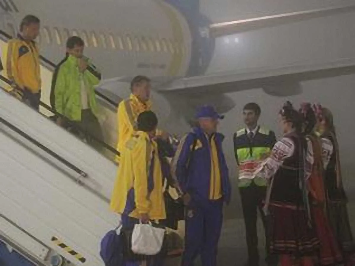 Раненые, но готовые к бою! Футбольная сборная Украины, завершив программу подготовки к домашнему Евро-2012, вернулась на Родину. Хлебом-солью дружину Блохина встретили в Борисполе.