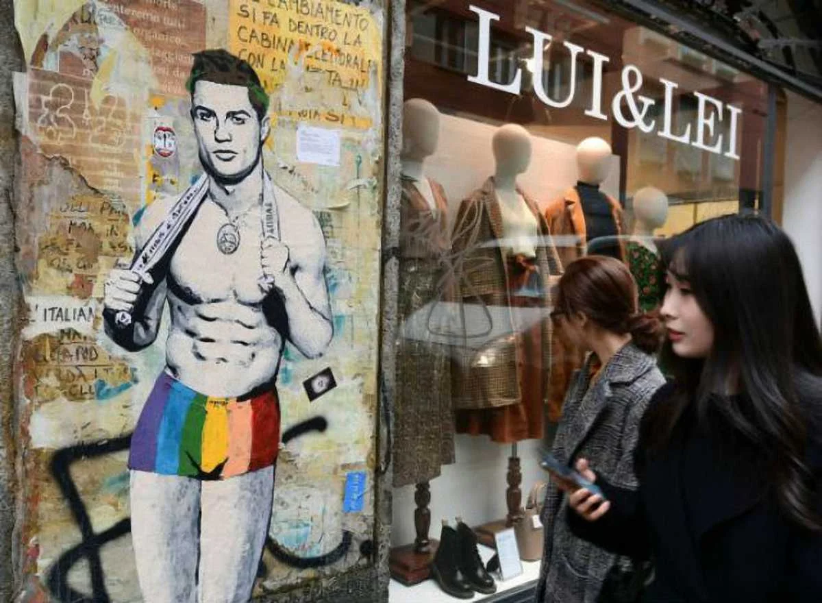 На одной из улиц итальянского Милана нарисовали граффити с форвардом туринского Ювентуса Криштиану Роналду. Португалец изображен в стиле античных статуй, а его интимную зону прикрывает белье в цветах ЛГБТ-сообщества.