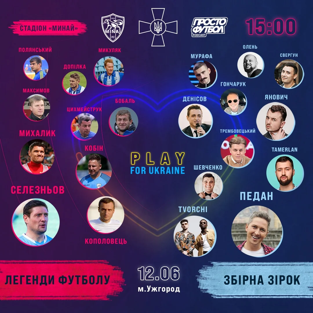 В воскресенье, 12 июня, на стадионе Миная состоится благотворительный поединок, в котором против украинских селебрити сыграют футболисты, в свое время игравшие в закарпатском клубе.