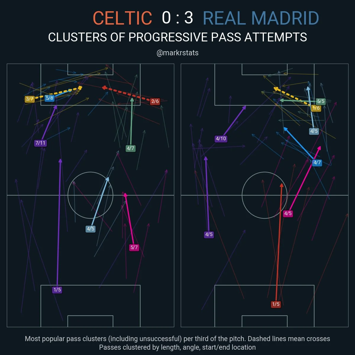 Интересно, что практически 27 процентов из 694 касаний мяча Селтик провел на трети поля Реала, причем 20 пасов прошел через самую опасную "зону 14".