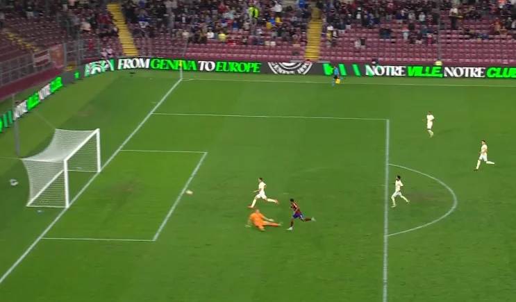 Все завершилось выходом Нжо один на один с обыгрышем Ризныка. Лилиан финишировал ударом в пустые ворота. 1:0! По сумме двух матчей Серветт вышел вперед.