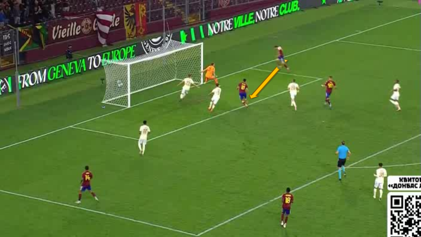 Так, на 91-й минуте Судаков выполнил заброску с левого фланга на дальнюю штангу. Ее никто не замкнул и не перехватил, поэтому мяч пролетел в сантиметрах от угла ворот.