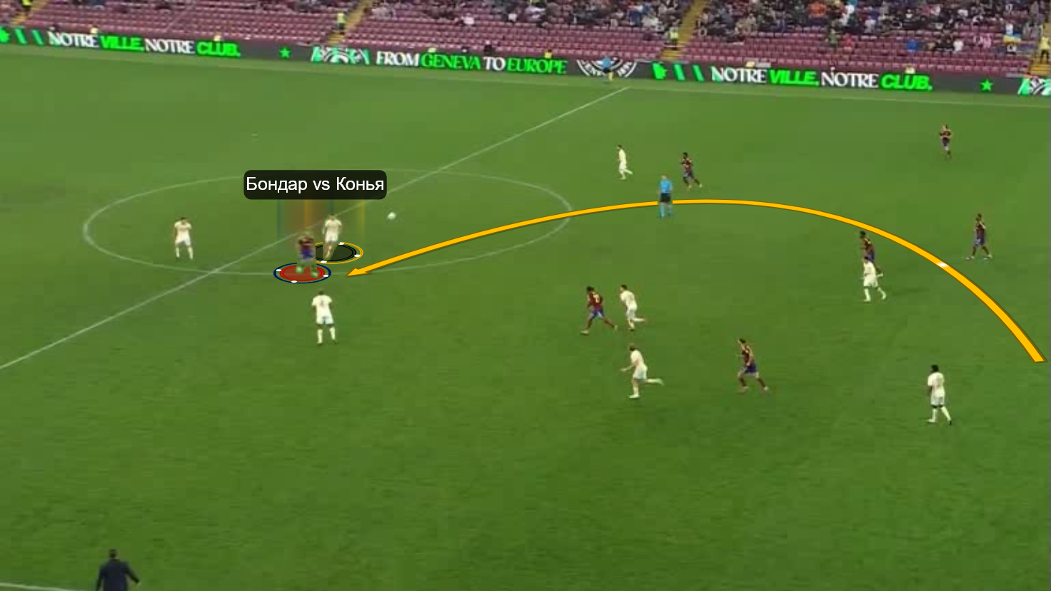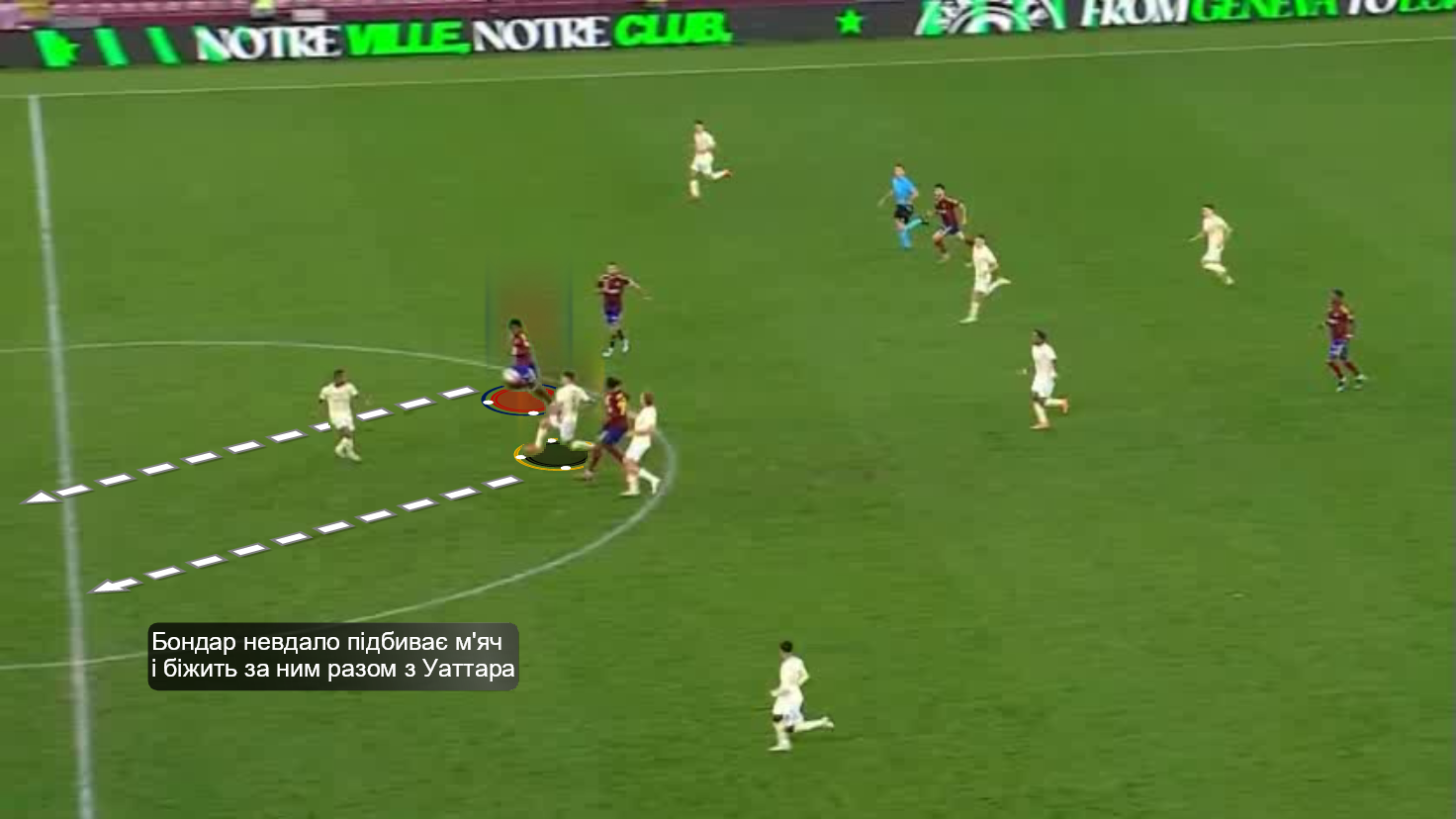 Его начал ... Бондарь, который нажал на Конью, когда тот принимал вынос от Мазику. Валерий развернул опорника, погнал его назад и в конце концов выбил мяч из-под ног.