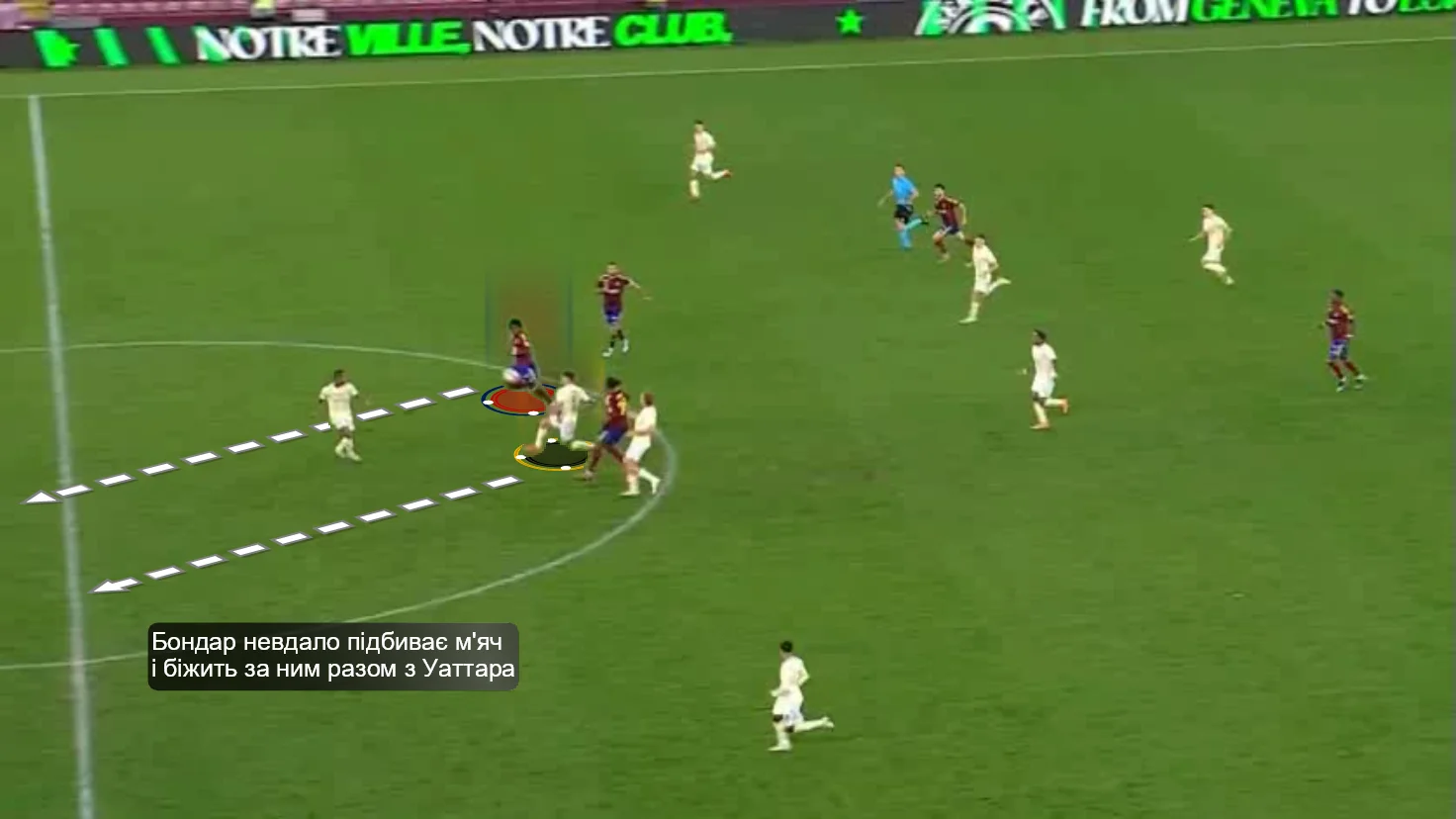 Эпизод возник после двух ошибок Бондара. Сначала Валерий неудачно подбил мяч и вынужден был бежать за ним под давлением Уаттара, а потом еще и не смог нормально выбить сферу в подкате. Уаттара мгновенно дал пас под выход один на один для Варелы.
