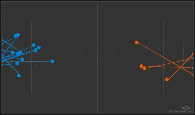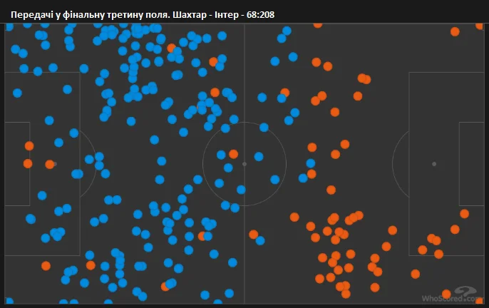 Наскільки це вдавалося? Найкраща відповідь – мапа передач у фінальну третину поля. На цих схемах можна помітити, що обидві команди переважно атакували своїм правим флангом.