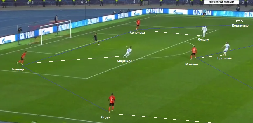 Дуже небезпечними були постійні закидання на Лукаку та Мартінеса, передачі за спини нашим захисникам. Хлопці трималися, але боротися з Лукаку у таких ситуаціях дуже складно. Періодично такі методи призводили до небезпечних моментів біля воріт Трубіна.