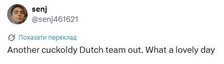 "Ще одна куколдівська нідерландська команда вилетіла. Який чудовий день".