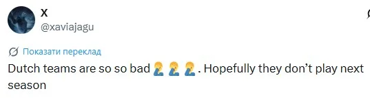 "Нідерландські команди такі жахливі. Сподіваюсь, вони не гратимуть наступного сезону".