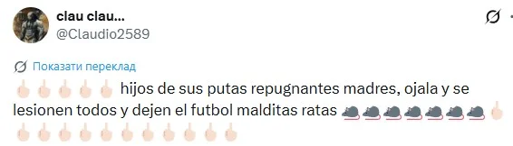 "Сини бридких пов*й. Травмуйтеся всі і облиште футбол, пацюки прокляті".