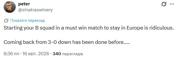 "Починати вирішальний матч за те, щоб залишитися в Європі, резервним складом – абсурд. Камбеки після 0:3 вже траплялись".