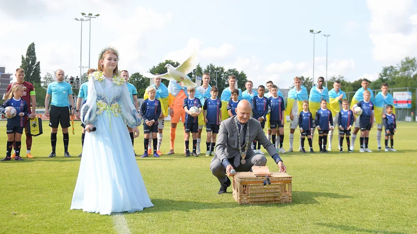 Атмосфера сегодняшнего матча была не совсем товарищеской. Нидерландские организаторы устроили красивое открытие – пригласили украинскую девочку исполнить наш гимн, мэр города произнес поздравительное слово. Много говорили о чести принимать у себя поединки команды из Украины – государства, продолжающего борьбу с оккупантами.