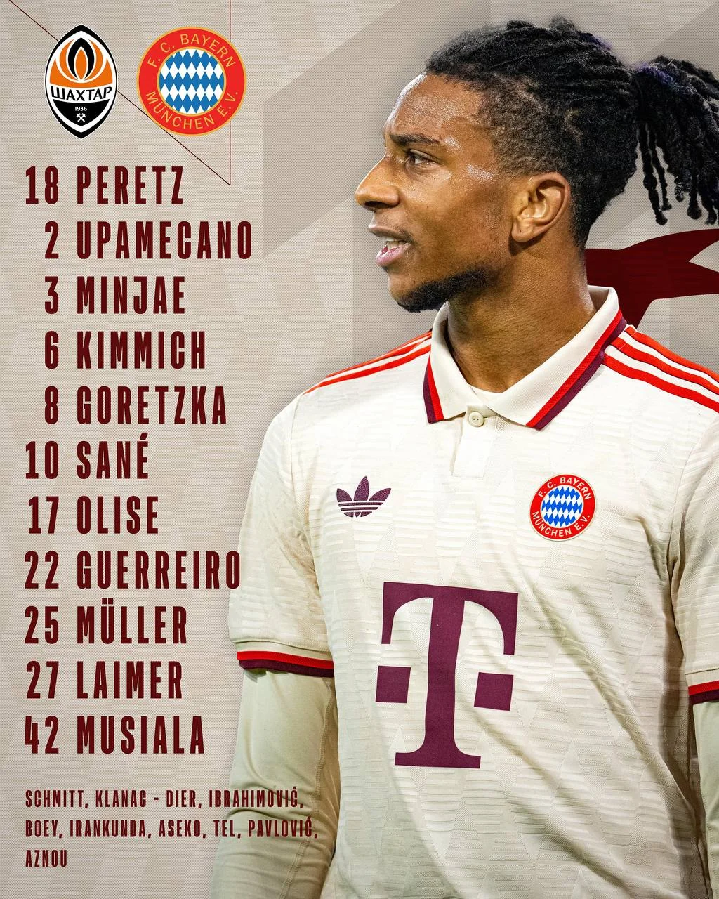 Бавария: Перетц – Лаймер, Упамекано, Ким, Геррейру – Киммих, Горецка – Олисе, Мусиала, Сане – Мюллер (к)