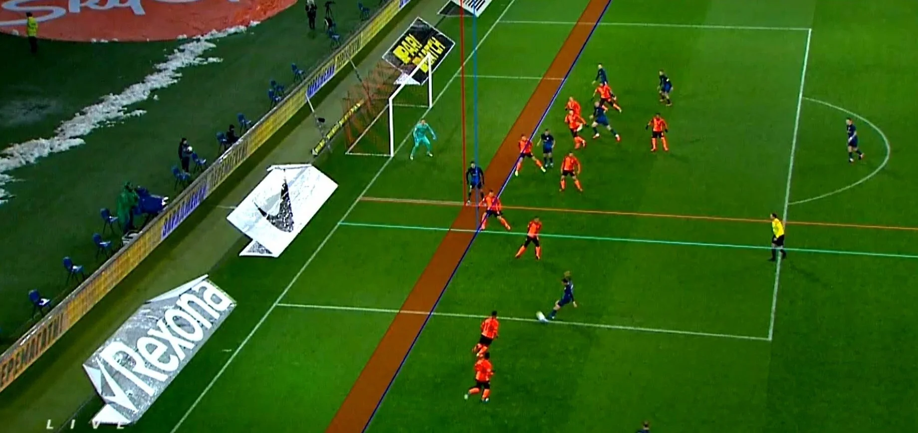 На 59 минуте матча команда из Чернигова разыграла угловой, и Гуцуляк после передачи Филиппова поразил ворота Трубина. Но после помощи VAR арбитр матча Евгений Арановский отменил гол, зафиксировав офсайд у форварда Десны.