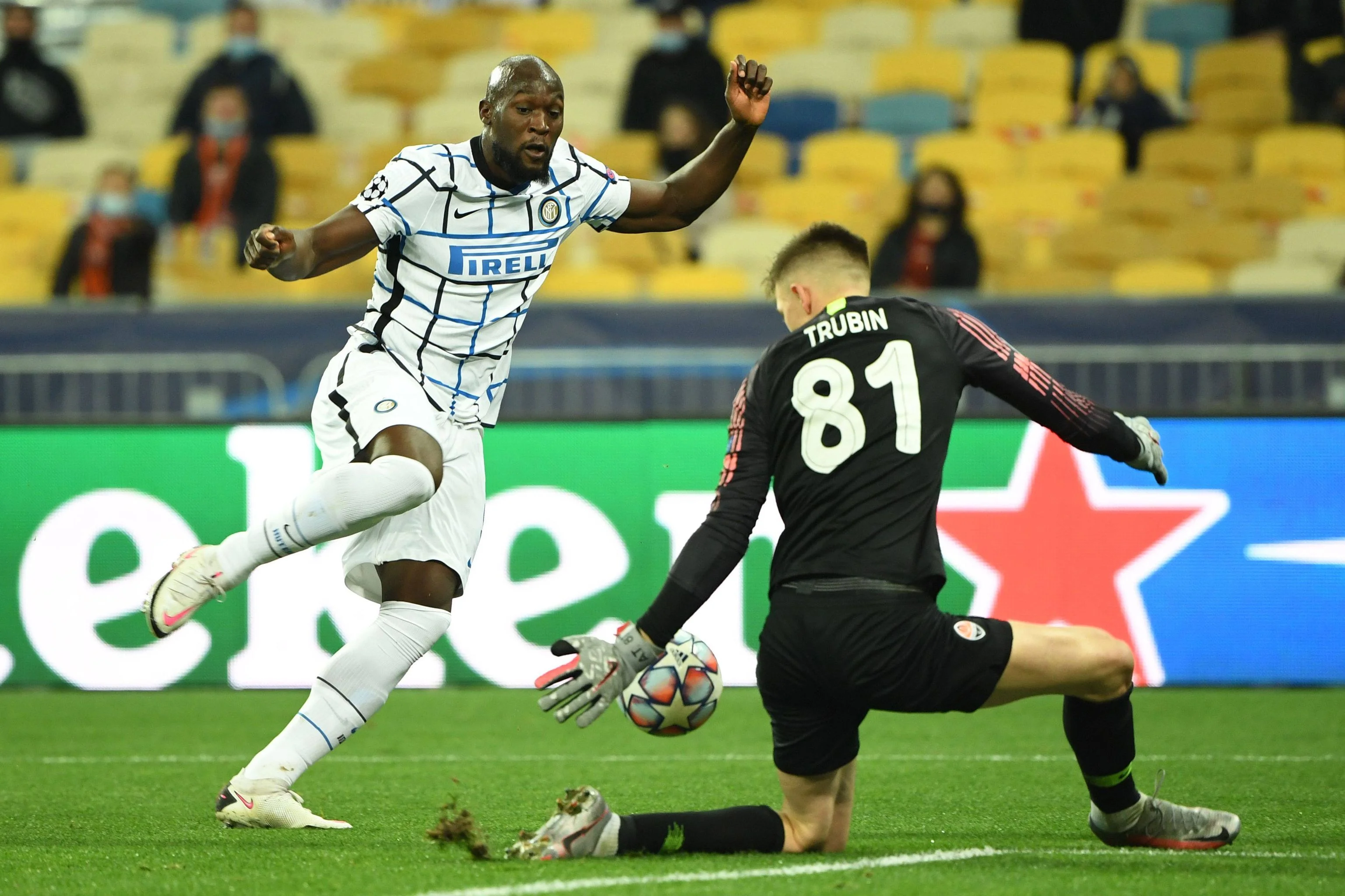 Дончанам невероятно повезло на 16-й. Интер наконец-то включился, организовав сразу два убийственных момента у ворот Трубина. Сначала молодой кипер забрал сферу после удара головой от Лаутаро, а уже через мгновение выиграл дуэль у великого и ужасного Лукаку. Бельгиец, как танк, прорвася мимо Хочолавы и выскочил на свидание с кипером, который удачно сыграл ногами. Барелла добавлял вторым темпом, но на этот раз Шахтер выручила перекладина!