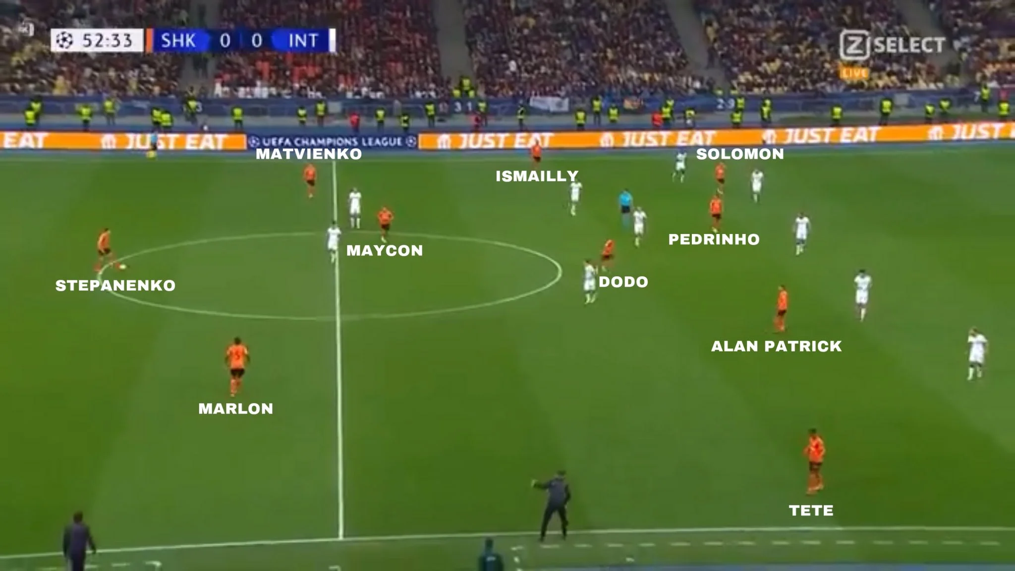 Украинцы выманивали интеристов на себя в штрафную и егее подступы. Фактически только раз это повлекло за собой проблемы. Пятов в концовке запаниковал и отдал лихорадочный средний пас вместо того, чтобы разыграть покороче. Хорошо, что там Лаутаро Мартинес простил. Однако сама идея Де Дзерби работала исправно. "Горняки" умело демонтировали фактически две линии соперника и проводили быстрые... контратаки, хотя соперник очень не хотел отдавать это свободное пространство. Традиционно развозили мячи Патрик и Педриньо (открывания между линиями, дриблинг, рывки – эти бразильцы вновь были самой большой проблемой для оппонента), прекрасно работал и Степаненко.