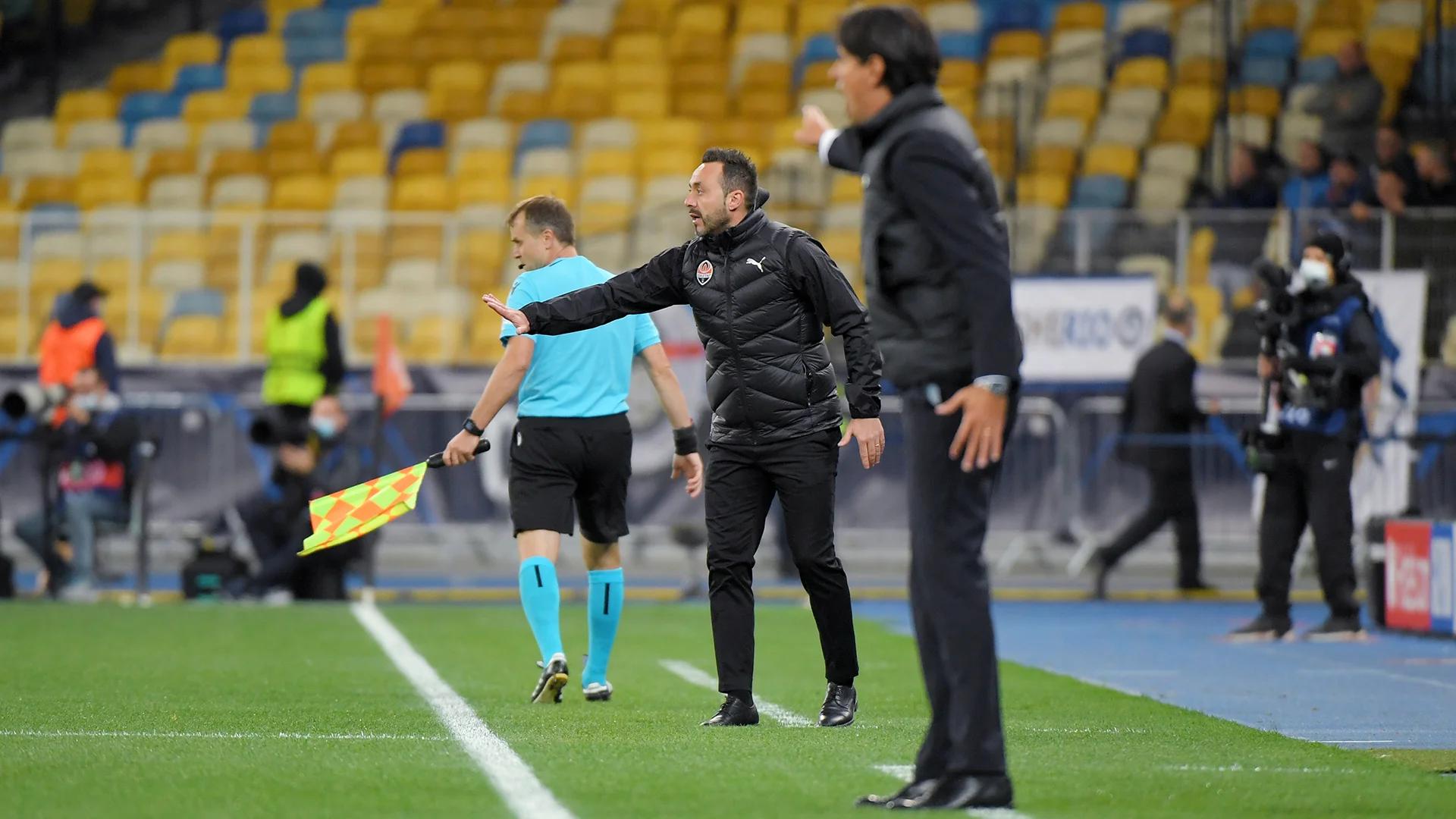 Де Дзерби за постоянные наезды на венгерского судью получил желтую карточку. Тяжело переживает итальянский тренер очередной промах дончан. Додо мог покатить направо, но взялся бить издалека – выше. Новая порция тренерских ходов после 70 минут. Алексис Санчес заменил Лаутаро Мартинеса, Гальярдини и Перишич – Весино с Димарко. Мудрик и Кривцов вместо Соломона и Исмаили. Матвиенко переходит на левый фланг. Юный украинец сразу же накрутил Дюмфриса и заставил заработать на себе желтую. Подачи Шахтера спокойно тушат сегодня центрбеки гостей. Марлос заменил Патрика на 85 минуте.