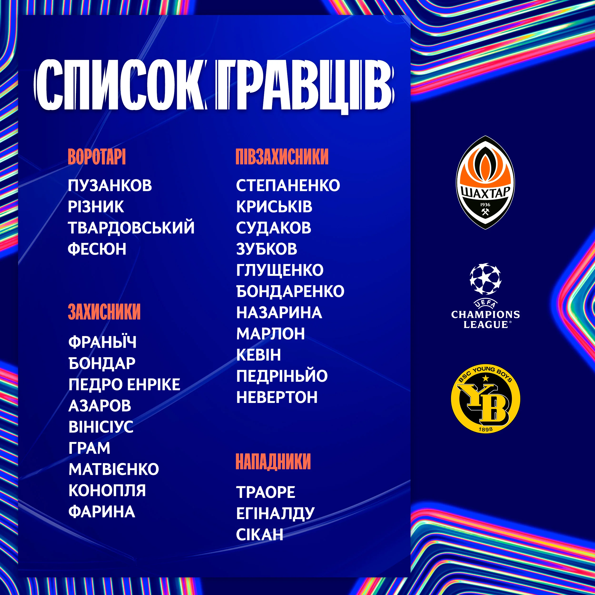 Шахтер обнародовал список игроков, которые могут принять в матче 4-го тура основного этапа ЛЧ против Янг Бойз.